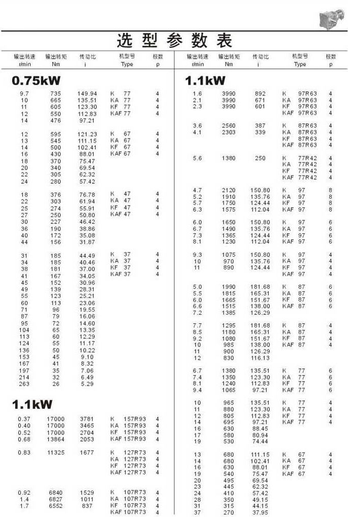 選型參數(shù)表0.75kW(續(xù))和1.1kW