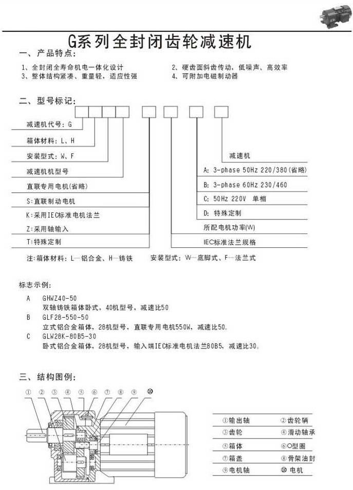 G系列全封閉齒輪減速機(jī)產(chǎn)品特點(diǎn)型號(hào)標(biāo)記結(jié)構(gòu)圖例