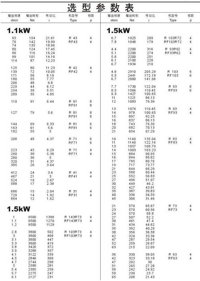 選型參數(shù)表1.1kW(續(xù)),1.5kW